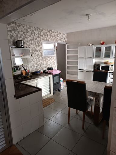Casa com ampla garagem com 2 imóveis nos fundos. Possui espaço lazer com churrasqueira e ampla garagem.